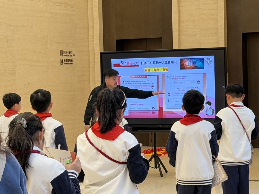 这堂“大思政课”的背后,是黄浦区馆校协同育人的精心探索。此次小学版首课,标志着“树德课堂·红色周一大思政课”品牌实现常态化落地。自2025年项目启动以来,黄浦区教育局联合中共一大纪念馆及区域相关部门、中小学校,依据上海“大思政课”建设综合改革试验区实施方案,将每周一固定为沉浸式教学日,让中小学生走进党的诞生地实景上课,全面升级区域综合育人体系,让思政教育真正走出校园、走进历史现场。为此,黄浦区教育局联合中共一大纪念馆建立了“双师制”,组建由场馆专家、教研员、一线教师和讲解员组成的“红色导师团”,反复打磨课程细节,完善研学手册、任务打卡等载体,确保每一门课程都“有根、有魂、有趣、有效”。